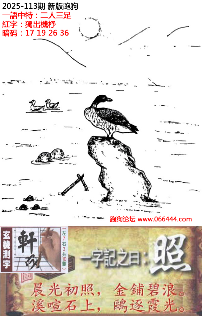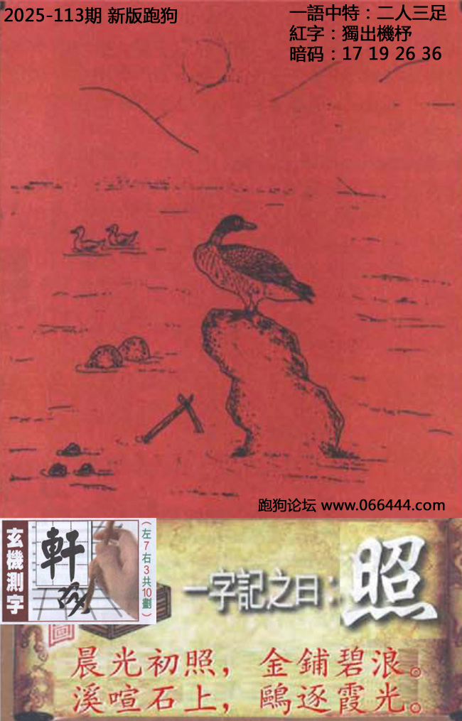 113期新版跑狗一字記之曰:【照】