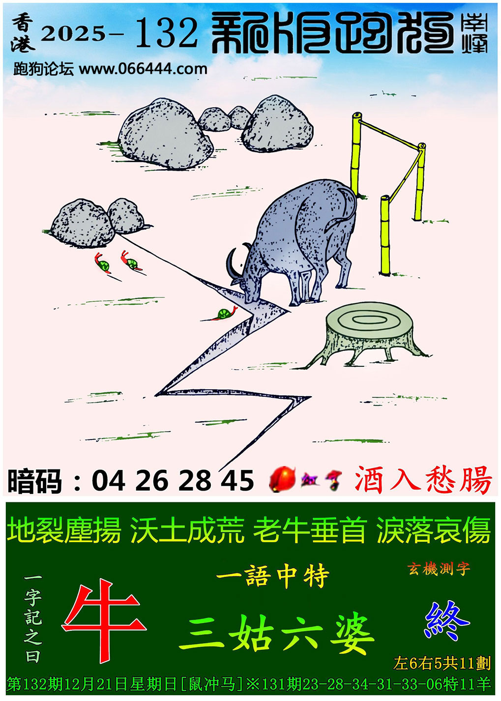 132期新版跑狗一字記之曰:【牛】