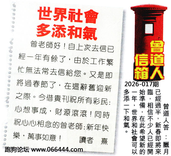 017期老版跑狗一字記之曰:【富】